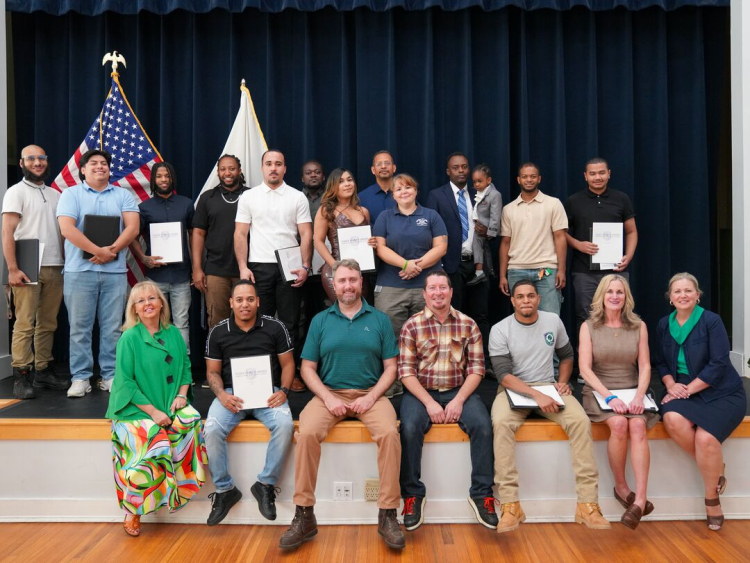 In August 2024, MassHire North Shore of Salem, MA, celebrated the graduation of its first cohort of clean energy and offshore wind trainees! Funded by MassCEC Equity Workforce Fund, the 14 trainees were recruited from underrepresented, low-income, or environmental justice neighborhoods from Salem, Lynn, and other North Shore communities in late Spring of 2024. For 12 weeks, they participated in an intensive program that included technical skills development and certifications, as well as broader career readiness skills and background on jobs in the offshore wind industry and the trade unions that are involved.