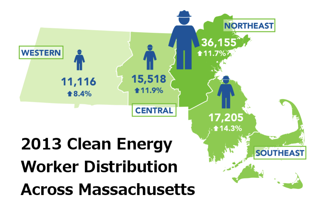 And we’re seeing this growth across the state, with the southeastern region rebounding from a period of decline from 2011 and 2012 to become the fastest-growing region of the Commonwealth in terms of clean energy employment with a 14.3% increase from 2012 to 2013. Small, independent contractors were a major driver of growth in Central and Western Massachusetts.